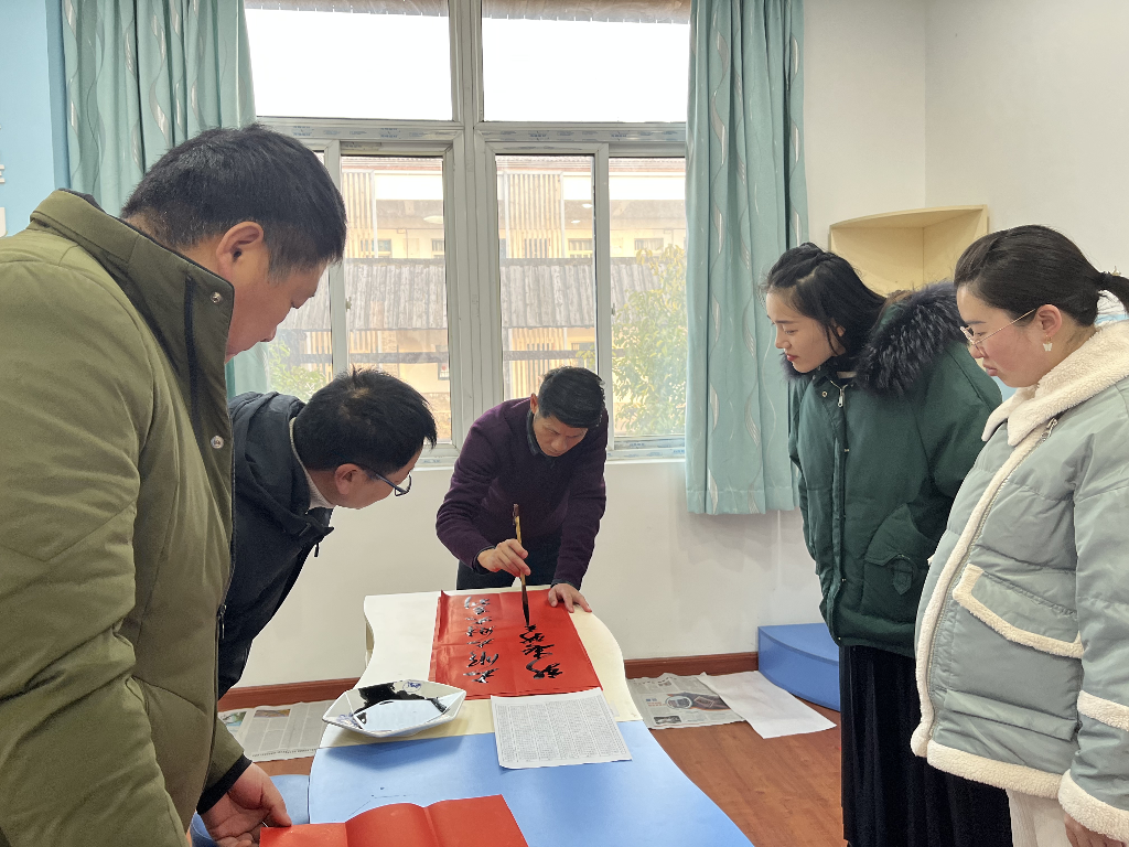 為傳承中華民族優秀傳統文化,豐富校園精神文化生活,營造吉祥如意的節日氛圍。2022年1月15日上午,中共淮南市望龍高級中學支部委員會閆玉良書記帶領全體黨員開展“喜迎新春寫對聯,情暖校園送祝?!敝黝}黨日活動,為學校全體教職工送上濃濃的新春祝福。